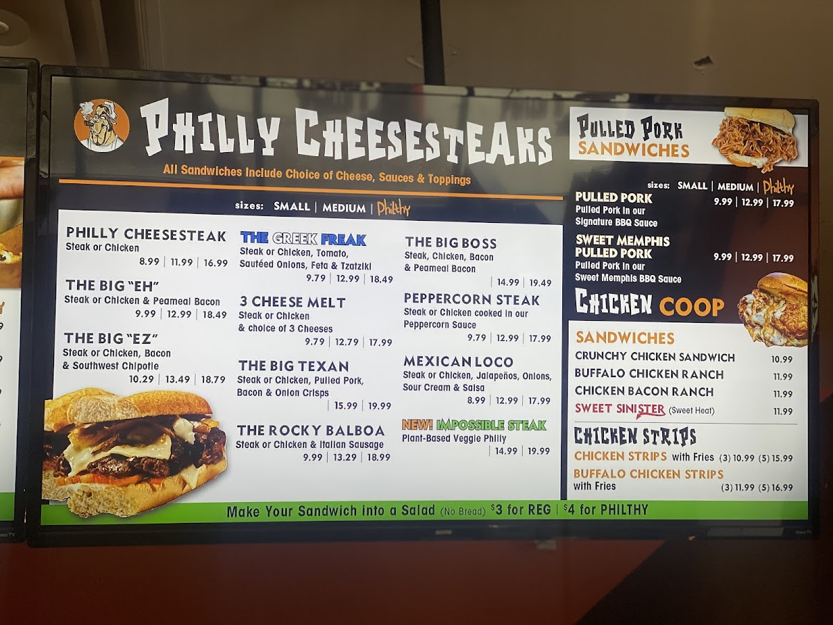 We decided to come here for dinner and the food was delicious . I had the Chicken greek freak, and my husband had the Philly cheesesteak. Staff were very friendly.